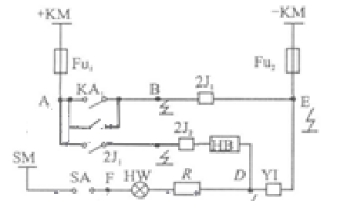 如圖1所示,當(dāng)圖中的A點和B點一同接地,相當(dāng)于A、B兩點通過大地相連接起來,中心繼電器2J1動作生成斷路器的跳閘。同理,當(dāng)圖中的A點和C點一同接地,或圖中的A點、D點一同接地均或許生成斷路器的跳閘。