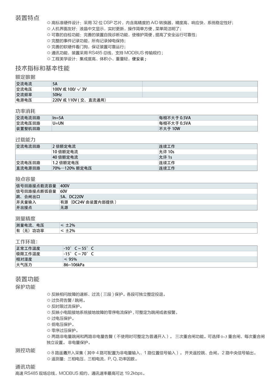 KSP-300 數字式綜合保護裝置是我公司為適應我國電氣成套事業 發 展的需要,積累多年電力自動化產品開發經驗,運用新技術、新工 藝 而推出的一款經濟型綜合保護裝置。裝置結構設計緊湊、體積小 巧,交 直流電源通用,可滿足 10KV 及以下電壓等級進出線、廠用 變等保護測 控功能。